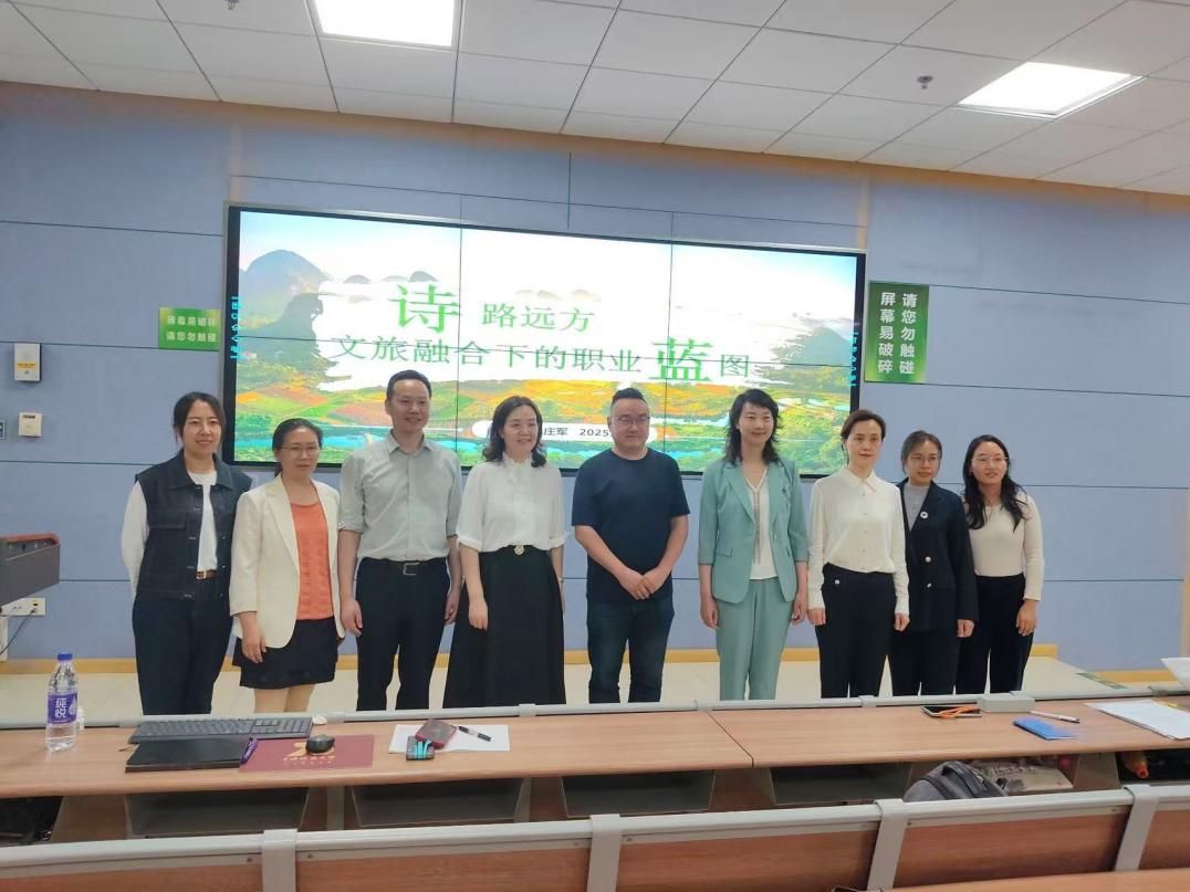 旅游管理专业分流宣讲暨员工分享会于当晚举行,邀请神州旅创文旅集团董事长兼CEO庄军,与同学们面对面交流文旅融合下的职业蓝图。李会琴老师解析新文旅产业转型趋势,结合“文旅融合”“数字旅游”等前沿方向,强调跨学科视野与实践创新能力。