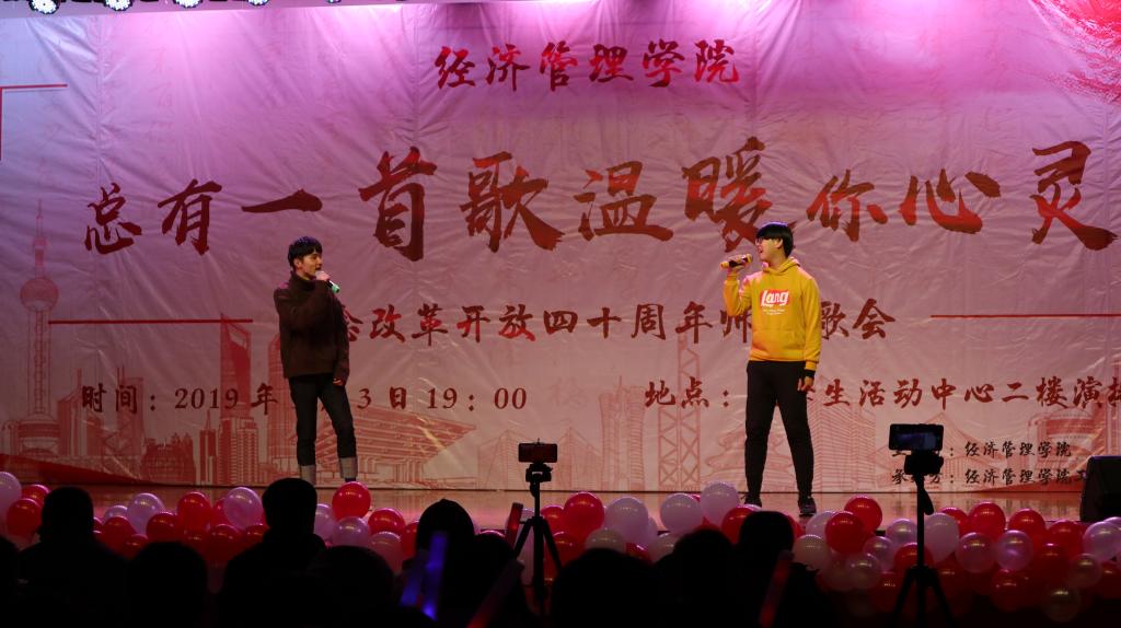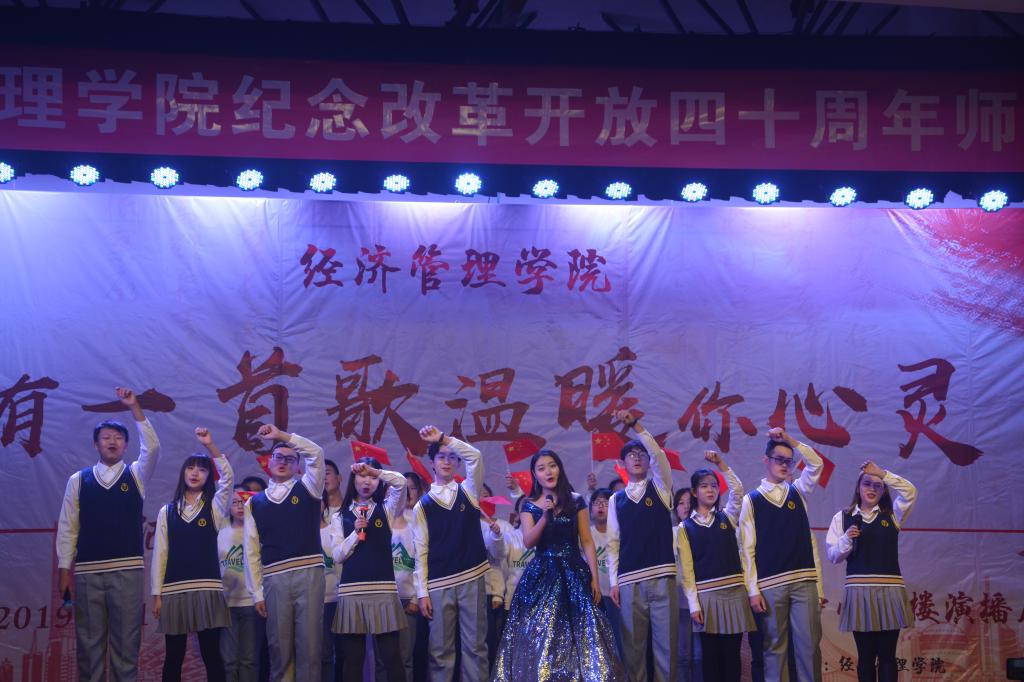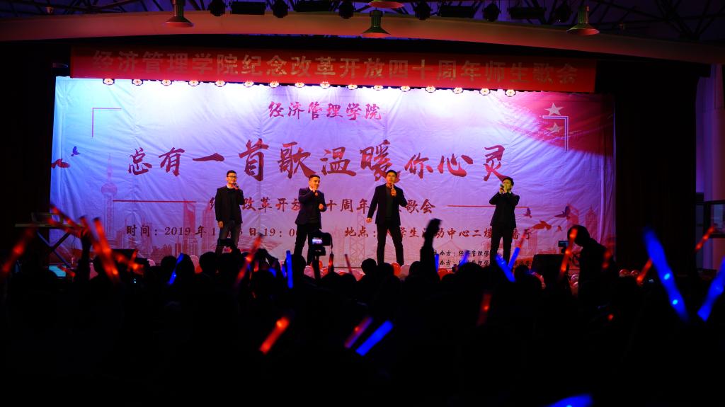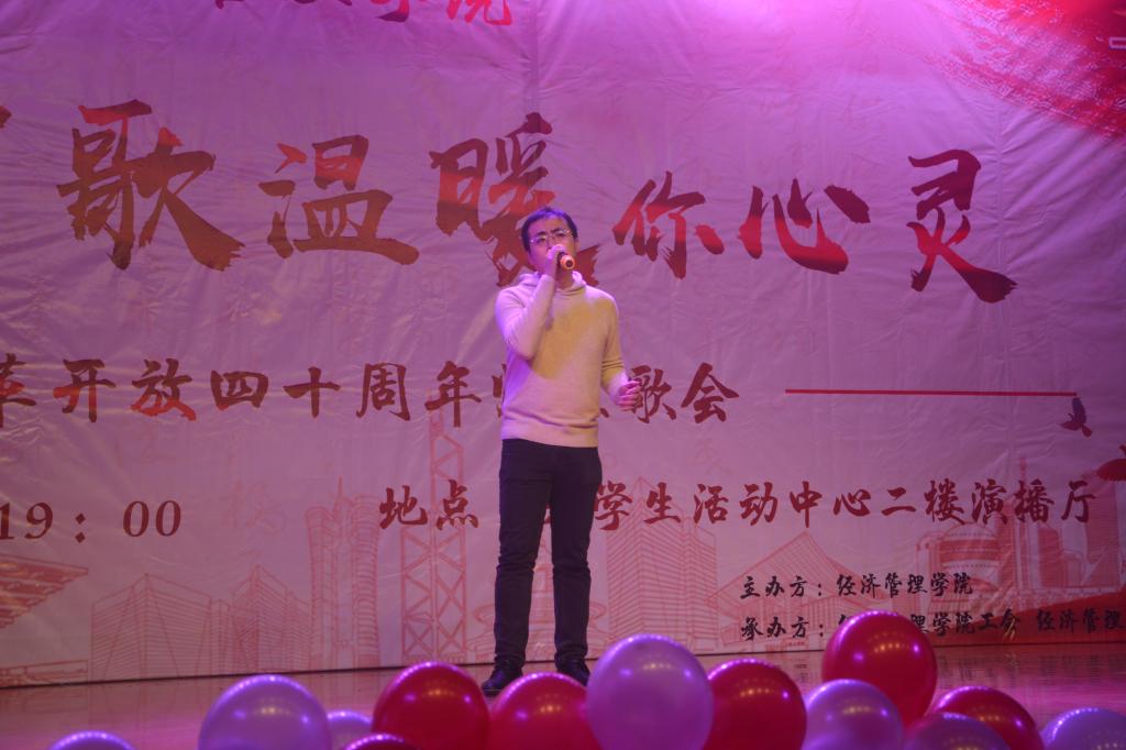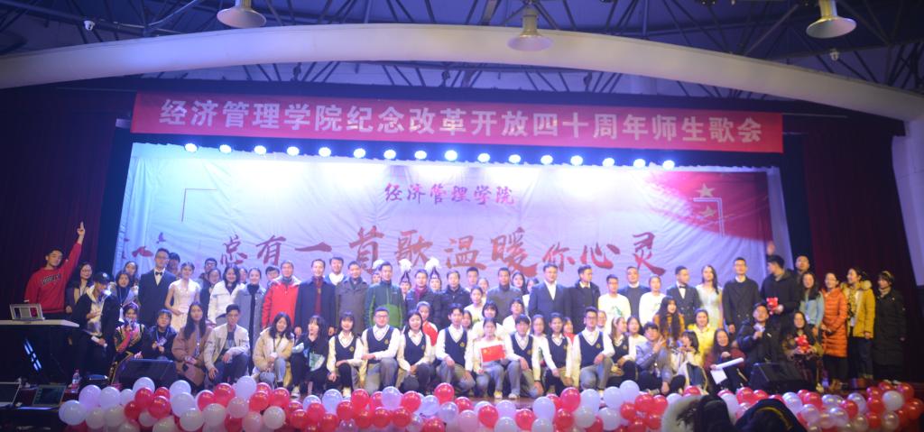 本次歌会分为“春回大地”“激情岁月”“乘风破浪”“继往开来”四个篇章,以歌曲的形式纪念了改革开放走过的极不平凡的四十年,用最温情的方式增进了师生间的感情,拉近了师生间的距离,每一首精心准备、深情演唱的歌曲都表达了经管人对党和祖国的热爱。歌会结束后,参加歌会的2017级本科生张康激动地说;“第一次看到这么多自己的老师上台表演,气氛真的很活跃。感谢这场歌会让我们多对讲台下的老师有了更多的了解,祝福公司越来越好,也祝福祖国改革开放的道路越走越宽广!”