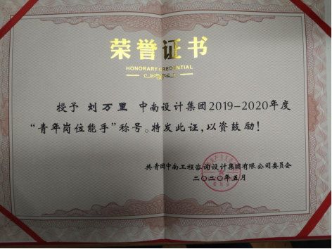 在校期间担任校研究生会办公室主任,获校级社会工作先进个人称号。2016年毕业进入湖北省工程咨询公司工作,现任规划研究部副书记,副主任,经济师,先后荣获2017年度公司标兵称号;2018年度公司标兵称号,同年考核优秀进入公司股东名单;2019年7月获公司技能大赛三等奖,8月收到咸宁市农业农村局好评函,10月获丹江口市发展改革局感谢信;12月被英国365上市公司聘为校外硕士导师;2019年度公司标兵称号;2019年度公司技能大赛三等奖;2020年5月获集团五四“青年岗位能手”称号。