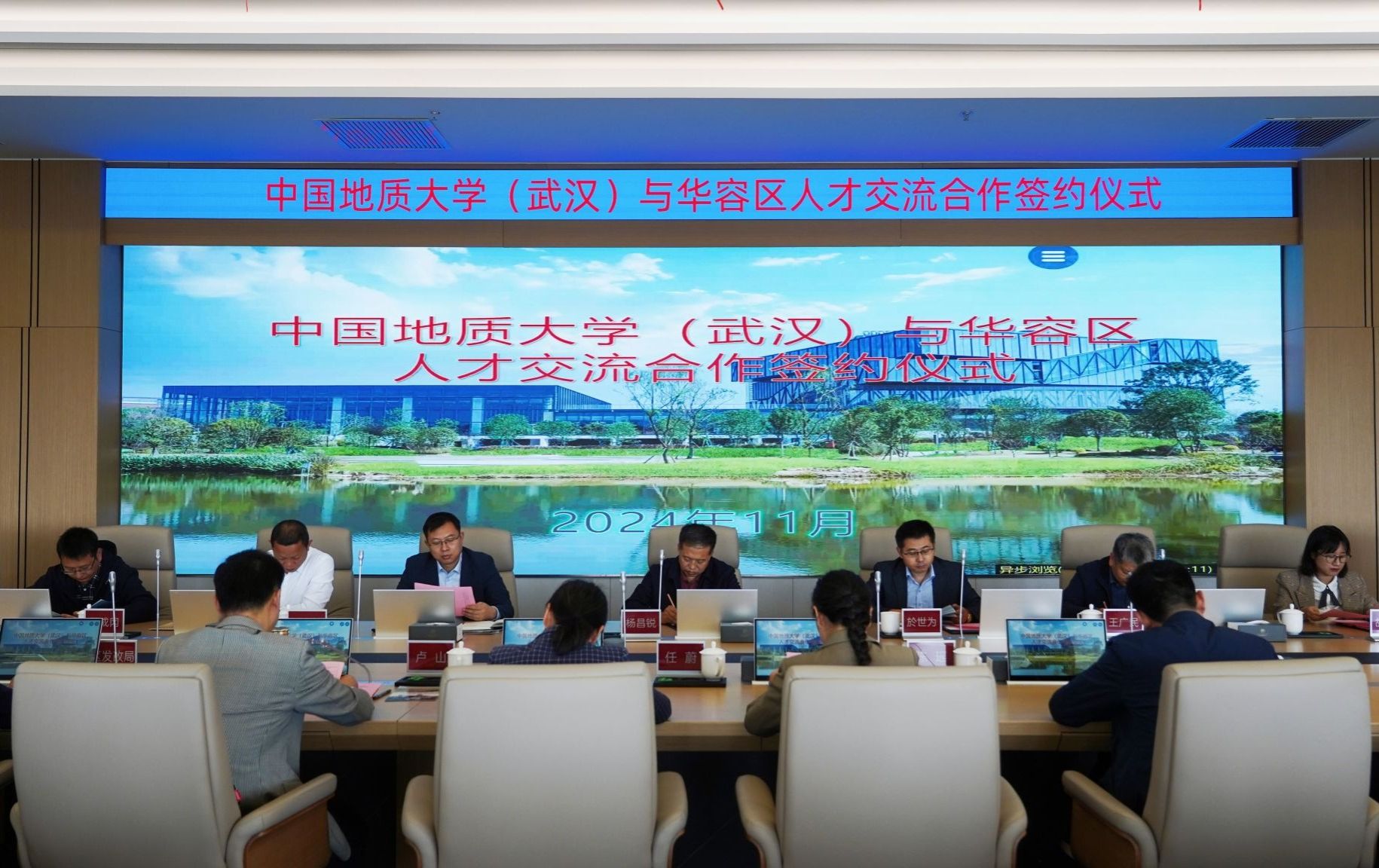(通讯员 胡启婧)为开展校地产学研融合,共谋高质量发展,11月4日上午,公司与华容区人民政府人才交流合作签约仪式在武汉新城展示中心隆重举行。公司党委书记杨昌锐、经理於世为、副经理王广民及相关教师代表出席签约仪式。