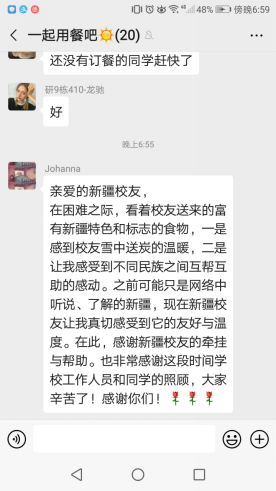 公司党委副书记王林清教授称赞道:“特殊时期,特别关爱,彰显同学情、爱校情,感谢同学们!”同时表达了问候。地大有真情,地大有温暖!在这个病毒肆虐的日子里,是地大“石榴籽”们用真情和爱心汇聚起了一缕阳光,团结一致为留在公司的同学们送去了温暖。收到援助物资后,老师和同学们用QQ、短信等方式纷纷点赞和表示感谢,也有的老师和同学以赋诗吟诵等方式表示致敬。