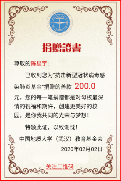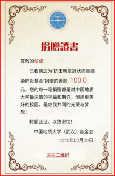 工程管理专业本科生党支部在这场防疫攻坚战中充分显示了其执行落实力和组织动员力。支部积极响应公司号召,落实公司党委的具体工作部署,利用党支部工作群,号召党员学习领会中共中央关于疫情防控的重要会议和决策部署;支部主动做好疫情防控的宣传工作,要求支部党员积极通过线上方式在班团中做好防疫宣传和员工心理疏导工作,“一个不少”针对支部所辖班团转发《致地大寒假留校员工的一封信》《致全体地大学子的一封信》《关于进一步加强员工留校及返校管理的通知》《关于开通心理支持网络服务的通知》《关于面向全校员工开通心理支持热线的通知》等重要文件。支部还号召党员力所能及地为重点疫区捐款捐物,支部内部募捐经费向地大教育发展基金会的“抗击新型肺炎基金”项目捐款1000元,以支部和党员个人名义向全国各地防疫相关基金会捐款共计3500余元。